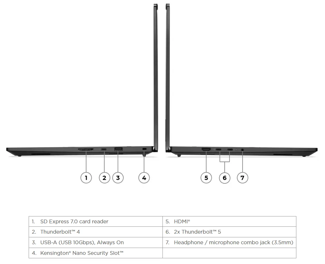 | Liidesed | 2x Thunderbolt 5, 2x USB-A, Thunderbolt 4/USB 4, HDMI 8K, heli/mikrofon, SD mälukaardilugeja |