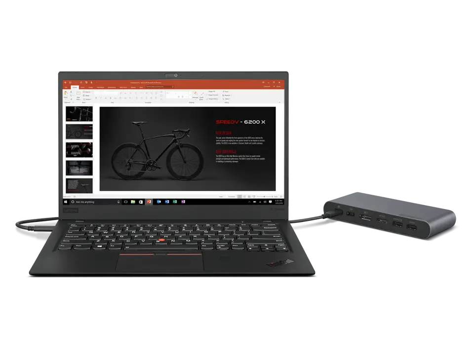 Oma 7+ läbimõeldud paigutusega pordiga pakub Lenovo USB-C Universal Business Dock võrreldamatut jõudlust ja pordilaiendust, hoides samal ajal teie laua korras. Tootlikkuse tõstmiseks piisab vaid ühest USB-C kaabli ühendusest sülearvutig